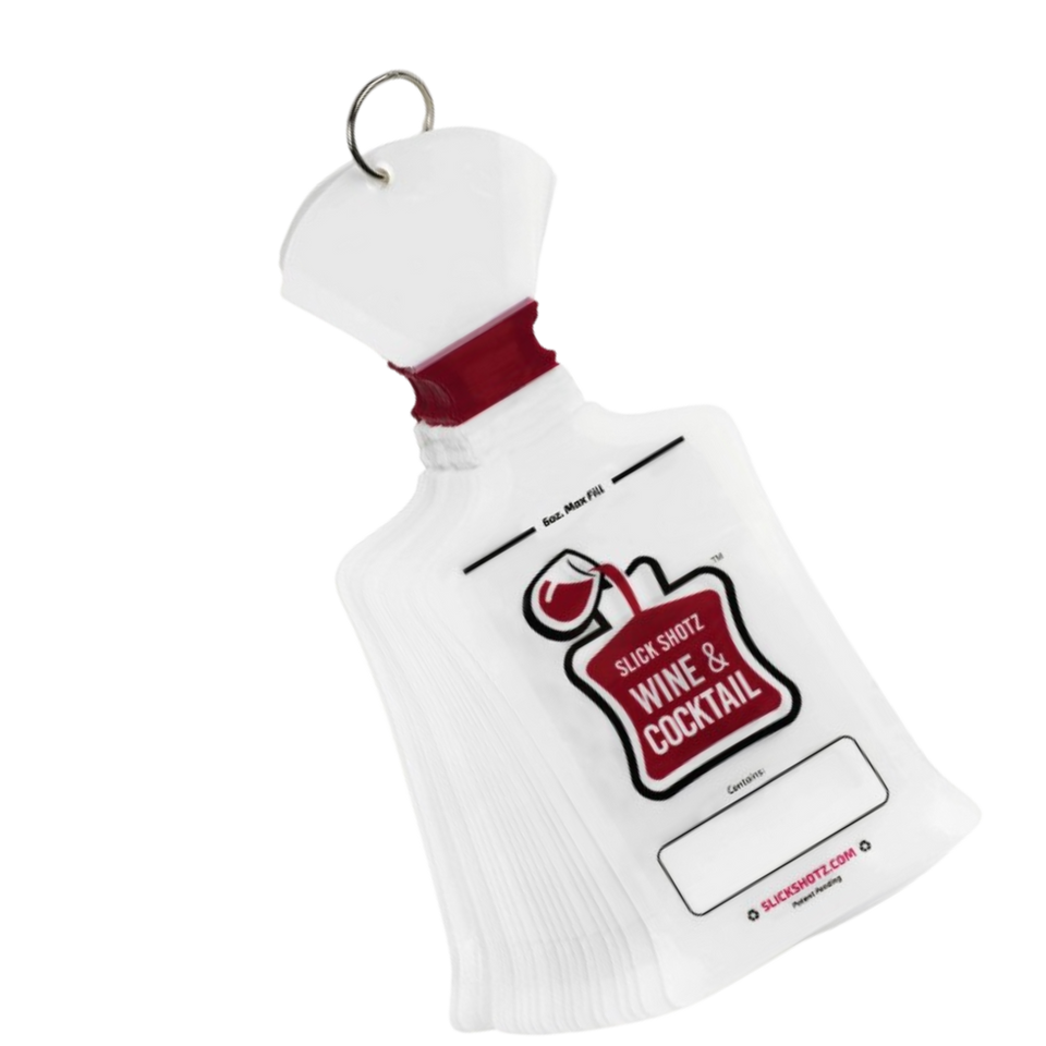 Each Slick Shotz Wine & Cocktail Flask can hold up to 6oz of your favorite Wine or Non-Carbonated Cocktail. Once filled, you will need to use a heat sealer (sold in our kits) or something similar like a vacuum food sealer, lighter, hair iron, clothes iron, etc. to properly heat seal each Slick Shotz Flask closed. Slick Shotz flasks are leak proof, extremely durable, made with BPA free food grade plastic, 100% flexible and no additional funnel is needed to fill them. Slick Shotz are the only heat sealed and legal-to-carry flask in the world and are even TSA Check-In Bag Approved. Making Slick Shotz the Slickest Flask Ever! (Always check local and state laws when traveling with and/or consuming alcohol)